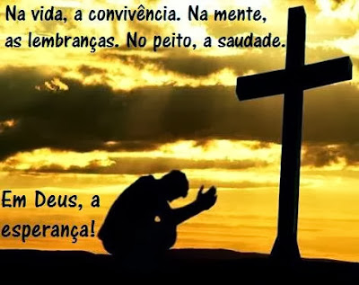POR ISSO HOJE VAMOS ORAR POR TODOS AQUELES QUE PERDEM SEUS PAIS, SUAS MÃES, SEUS MARIDOS OU ESPOSAS, PARA QUE JESUS OS CARREGUE EM SEU COLO E COLOQUE EM SEUS CORAÇÕES O SENTIMENTO DE “SAUDADE SIM, TRISTEZA NÃO”!