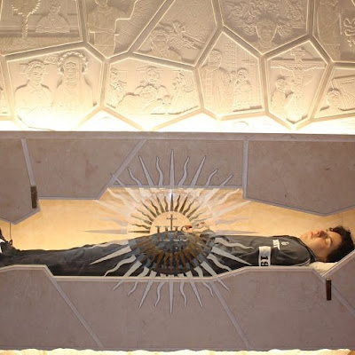 A tumba fica no Santuário da Espoliação de Assis e foi aberta depois da missa, celebrada pelo bispo Domenico Sorrentino. Durante a homilia, o pastor ressaltou que “hoje Carlos volta de alguma maneira visível, a beleza de sua presença entre os anjos e os santos. Carlos nos ajuda a seguir seus passos para nos convertermos a Jesus”.