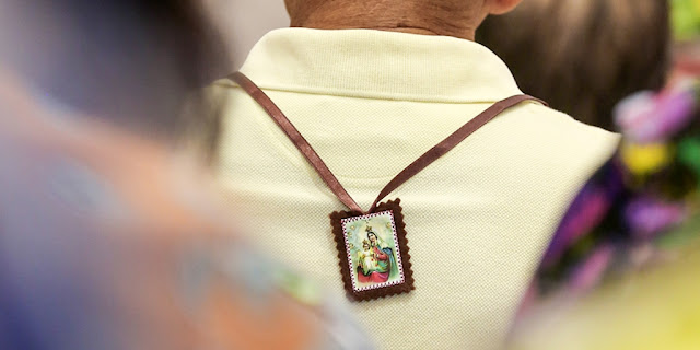 "No sinal do escapulário está contida uma síntese evocativa da espiritualidade mariana que anima a piedade dos crentes, estimulando sua sensibilidade à presença amorosa de Nossa Senhora, a Mãe, em suas vidas" - disse São João Paulo II. Veja aqui: